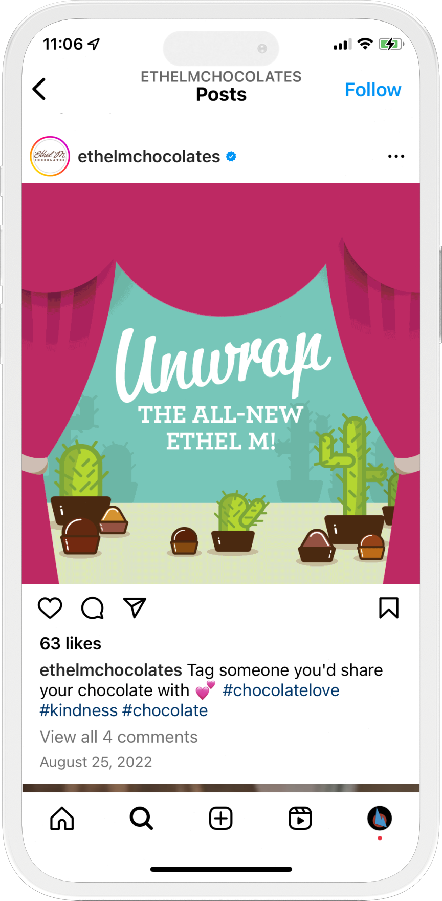 Tactics included enticing contests, influencer strategy, special event content, animation, and viral video creation. Braintrust continually adhered to key brand pillars and messages. In addition, we leveraged Ethel M’s place as official chocolate of the Vegas Golden Knights new NHL franchise to generate additional excitement for the Ethel M brand during the team’s thrilling inaugural season.