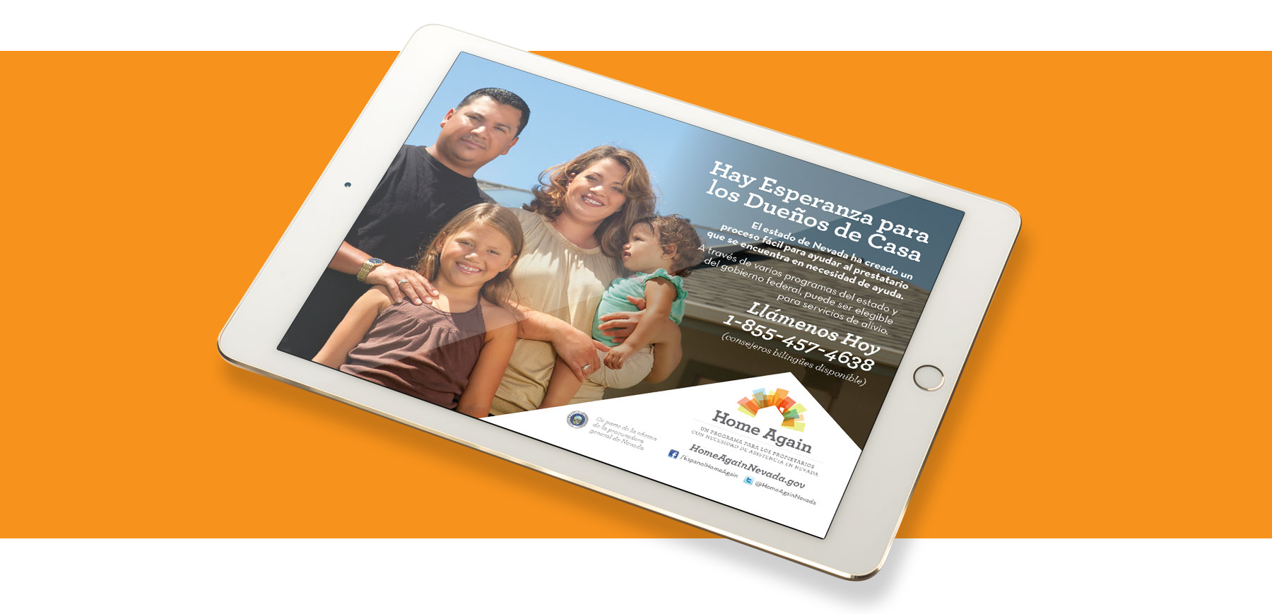 In the wake of one of the worst housing crises in our nation’s history, the office of the Nevada Attorney General introduced a new public service called the “Home Again: Nevada Homeowner Relief Program,” designed to make it easier for distressed homeowners in Nevada to determine what state or federal assistance may be available to them with a single “one-stop,” free resource. After participating in a statewide RFP to establish the name of the program and its brand platform, Braintrust was engaged to produce the visual and verbal communications for Home Again and to conduct external marketing services for the new program.