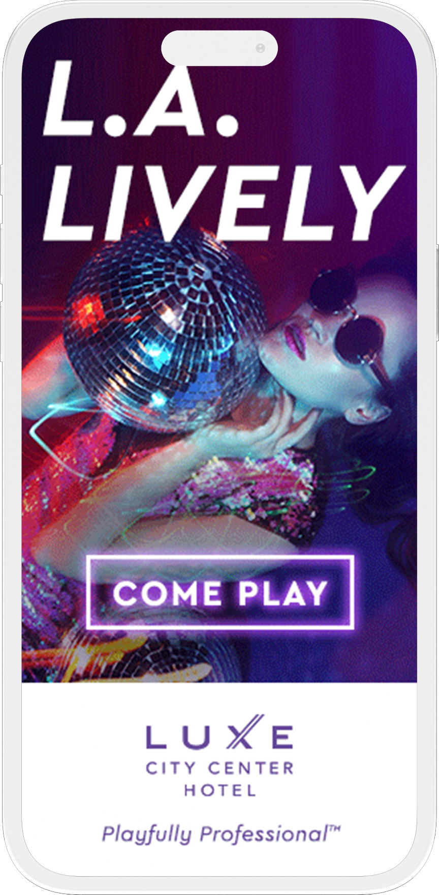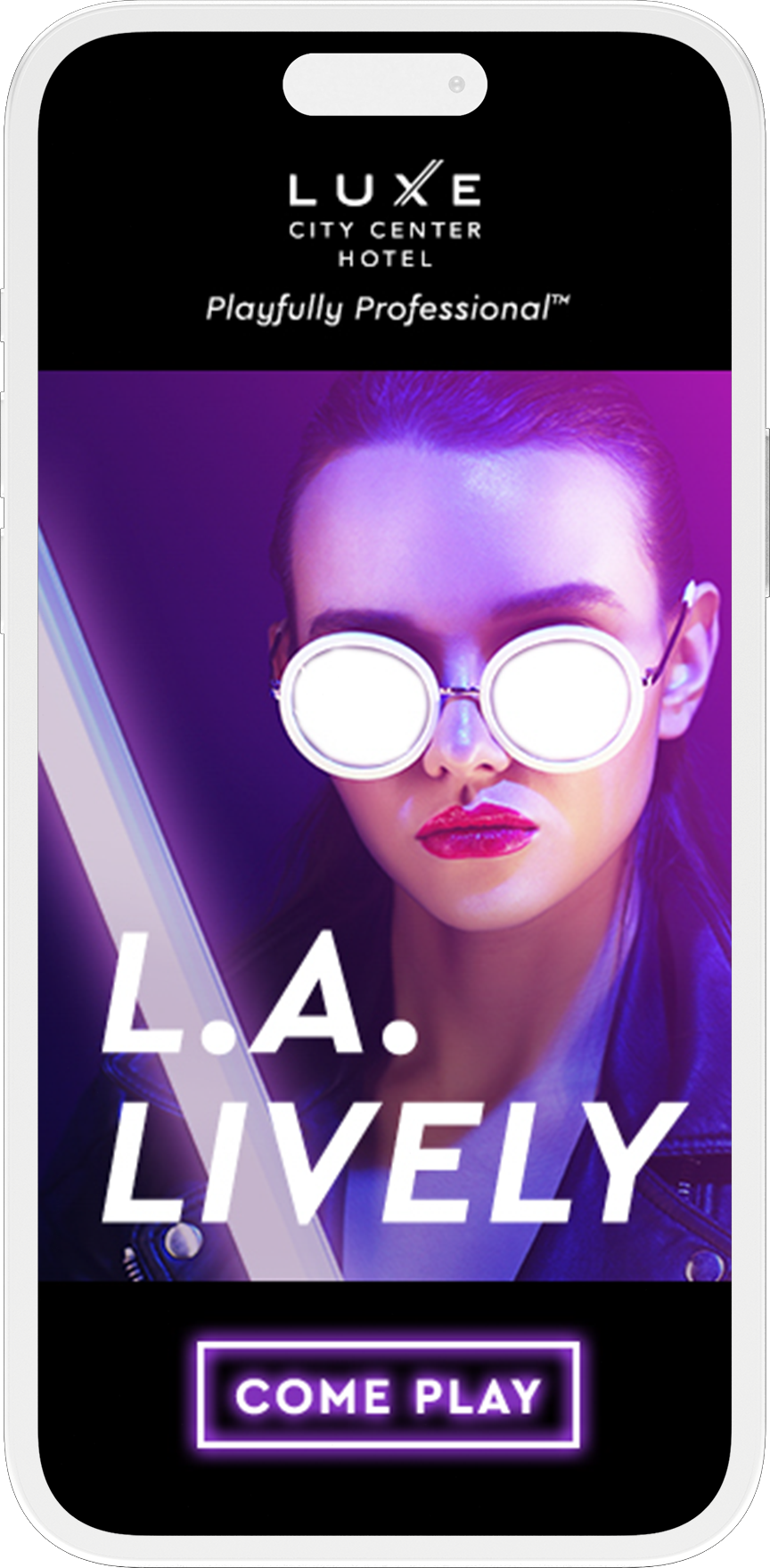 The result was “Playfully Professional,” a brand platform that highlighted the nature of those that stay at LUXE City Center, like business travelers that want to be in the middle of it all and let loose after a day of meetings.